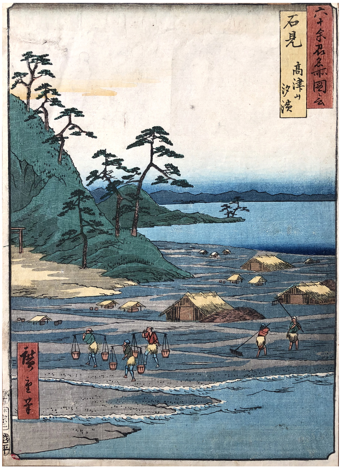 Woodblock Print Title: Iwami Province: Mount Takazuno, Salt Beach (Iwami, Takazunoyama, Shiohama), from the series Famous Places in the Sixty-odd Provinces [of Japan] ([Dai Nihon] Rokujûyoshû meisho zue)
