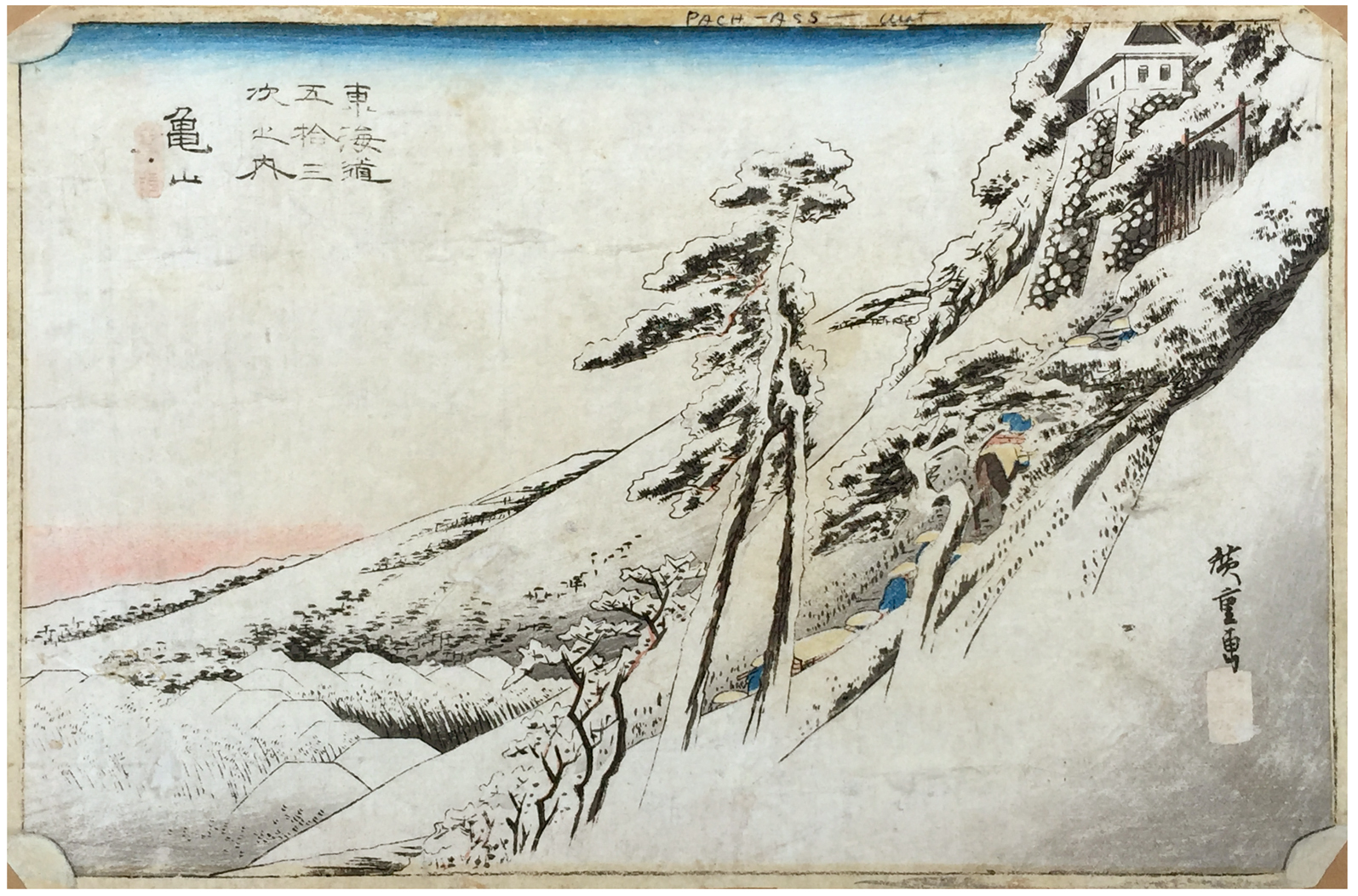 Woodblock Prints Title: Kameyama: Clear Weather after Snow (Kameyama, yukibare), from the series Fifty-three Stations of the Tôkaidô (Tôkaidô gojûsan tsugi no uchi), also known as the First Tôkaidô or Great Tôkaidô