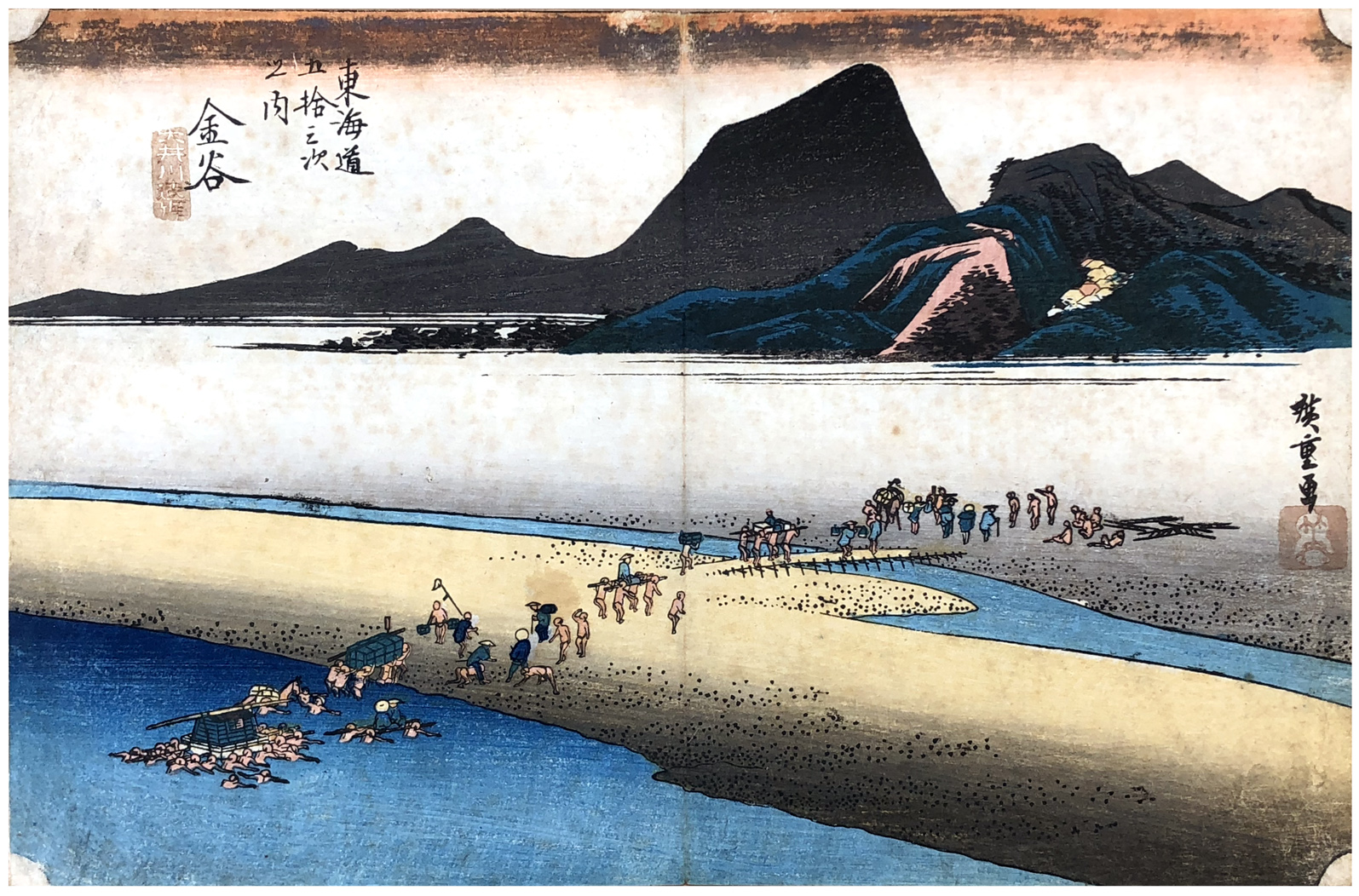 Woodblock Print Title: Kanaya: The Far Bank of the Ôi River (Kanaya, Ôigawa engan), from the series Fifty-three Stations of the Tokaido