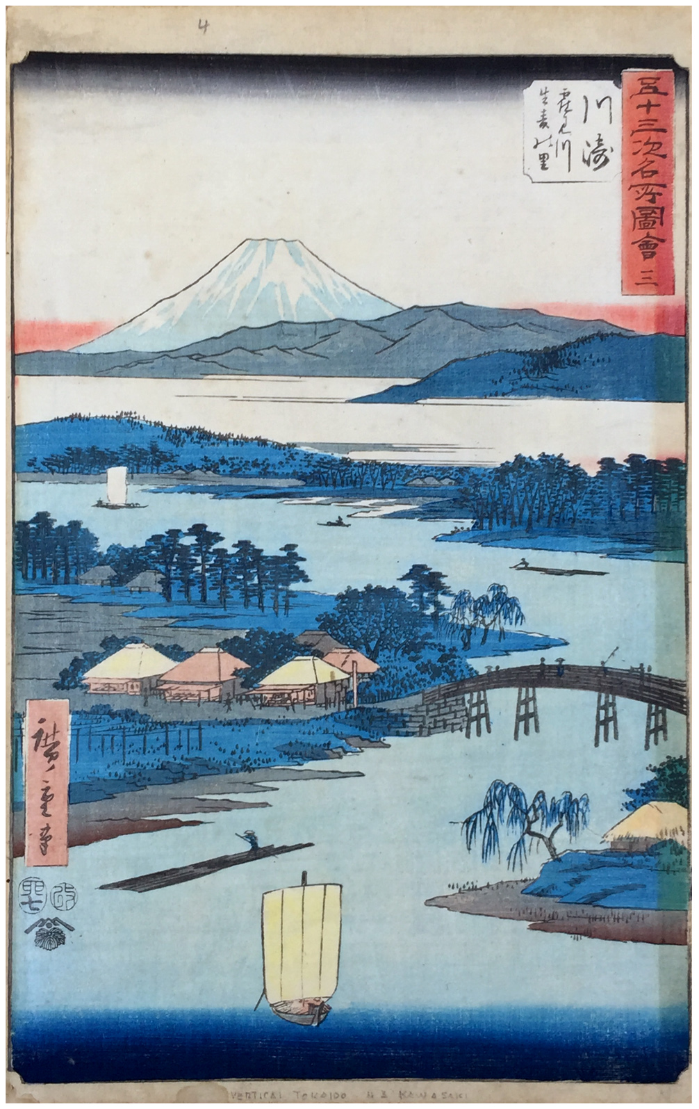 Woodblock Prints Title: Kawasaki: Tsurumi River and Namamugi Village (Kawasaki, Tsurumigawa Namamugi no sato), from the series Famous Sights of the Fifty-three Stations (Gojûsan tsugi meisho zue), also known as the Vertical Tôkaidô