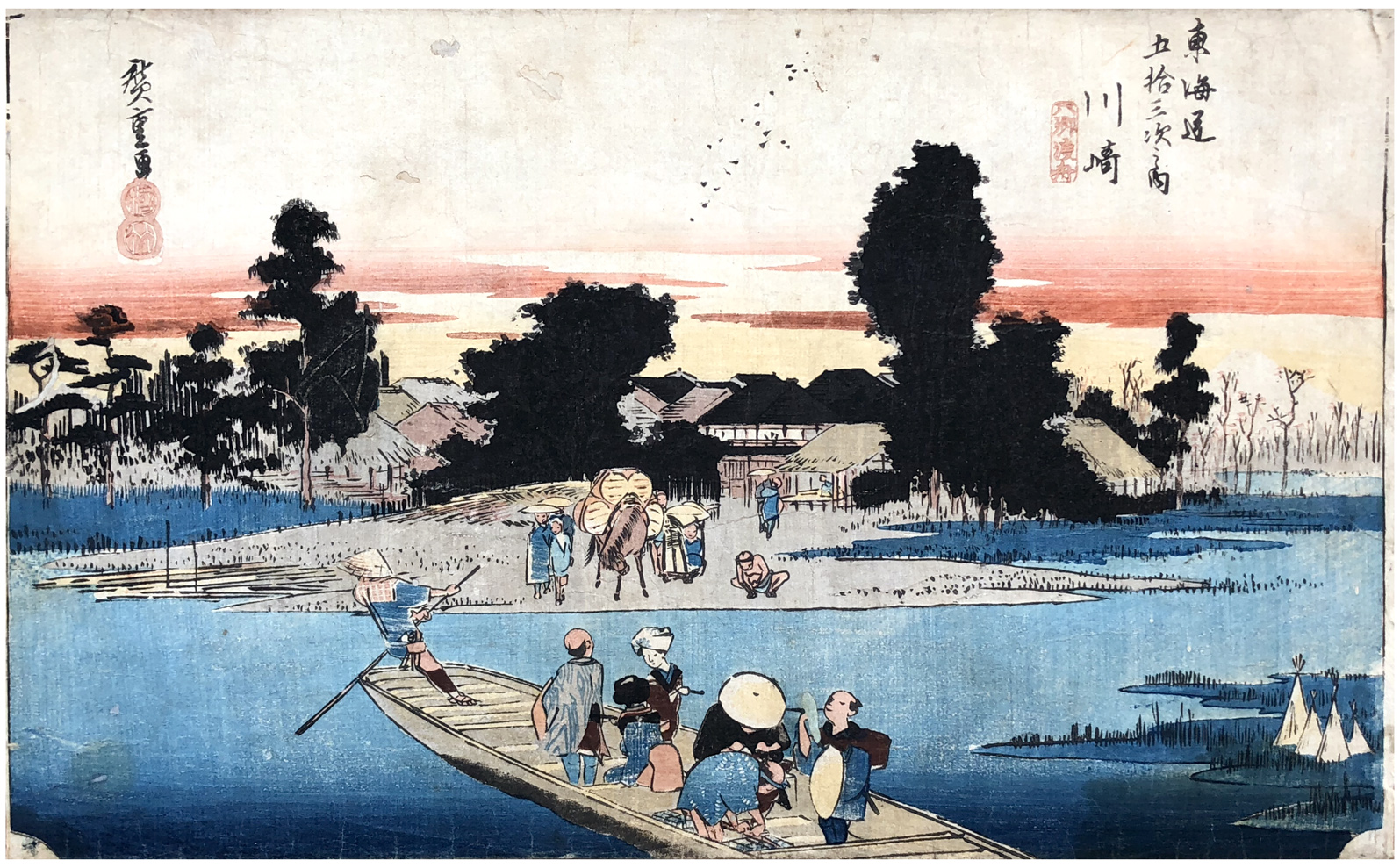 Woodblock Print Title: Kawasaki: The Rokugô Ferry (Kawasaki, Rokugô watashibune), second version, from the series Fifty-three Stations of the Tokaido Road
