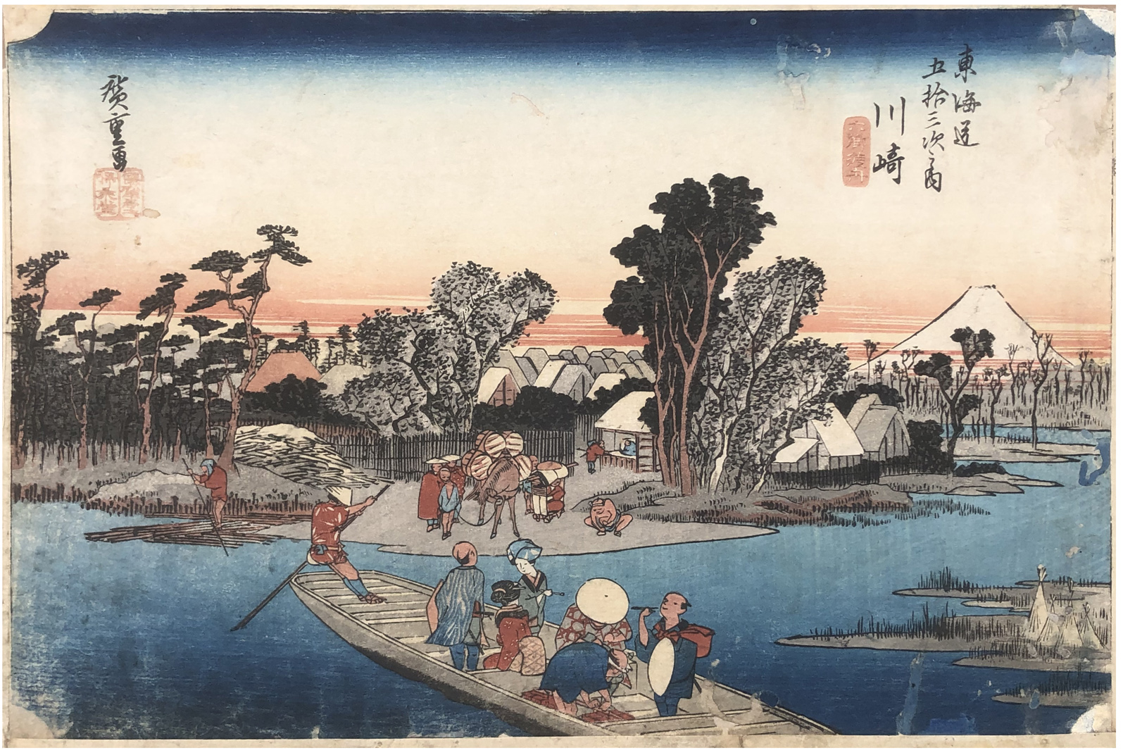 Woodblock Print Title: Kawasaki: The Rokugô Ferry (Kawasaki, Rokugô watashibune) from the series Fifty-three Stations of the Tokaido Road
