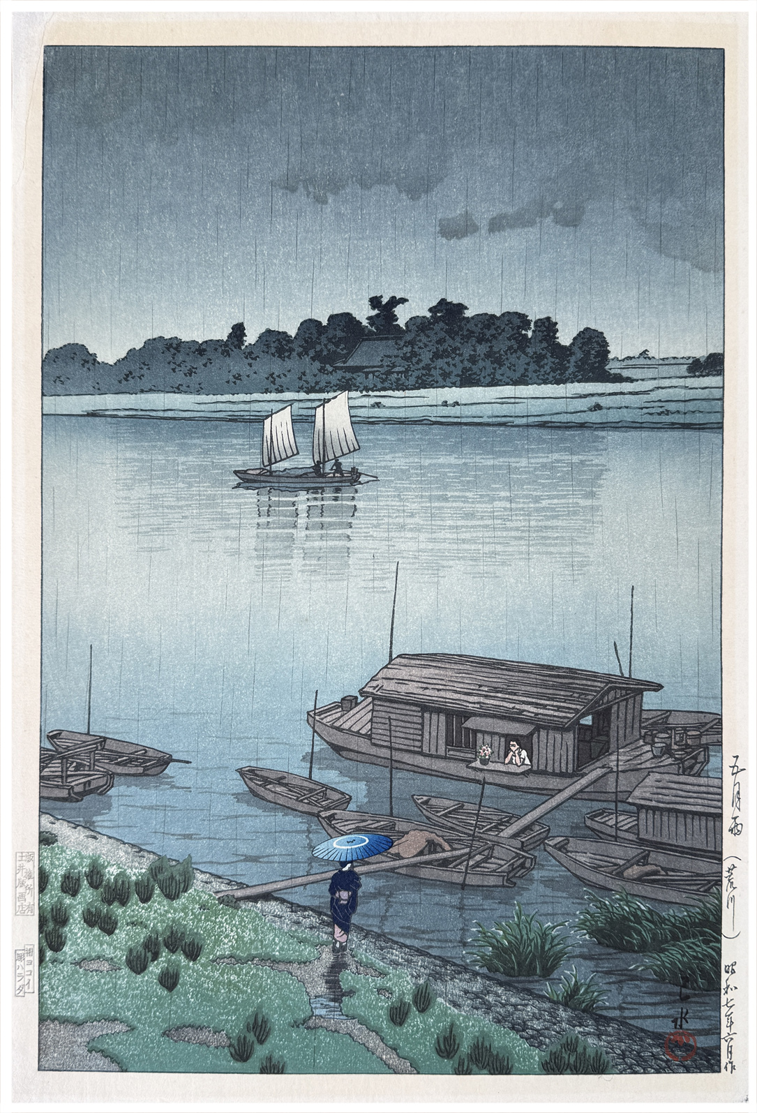 Woodblock Print Title: Arakawa River in May Rain