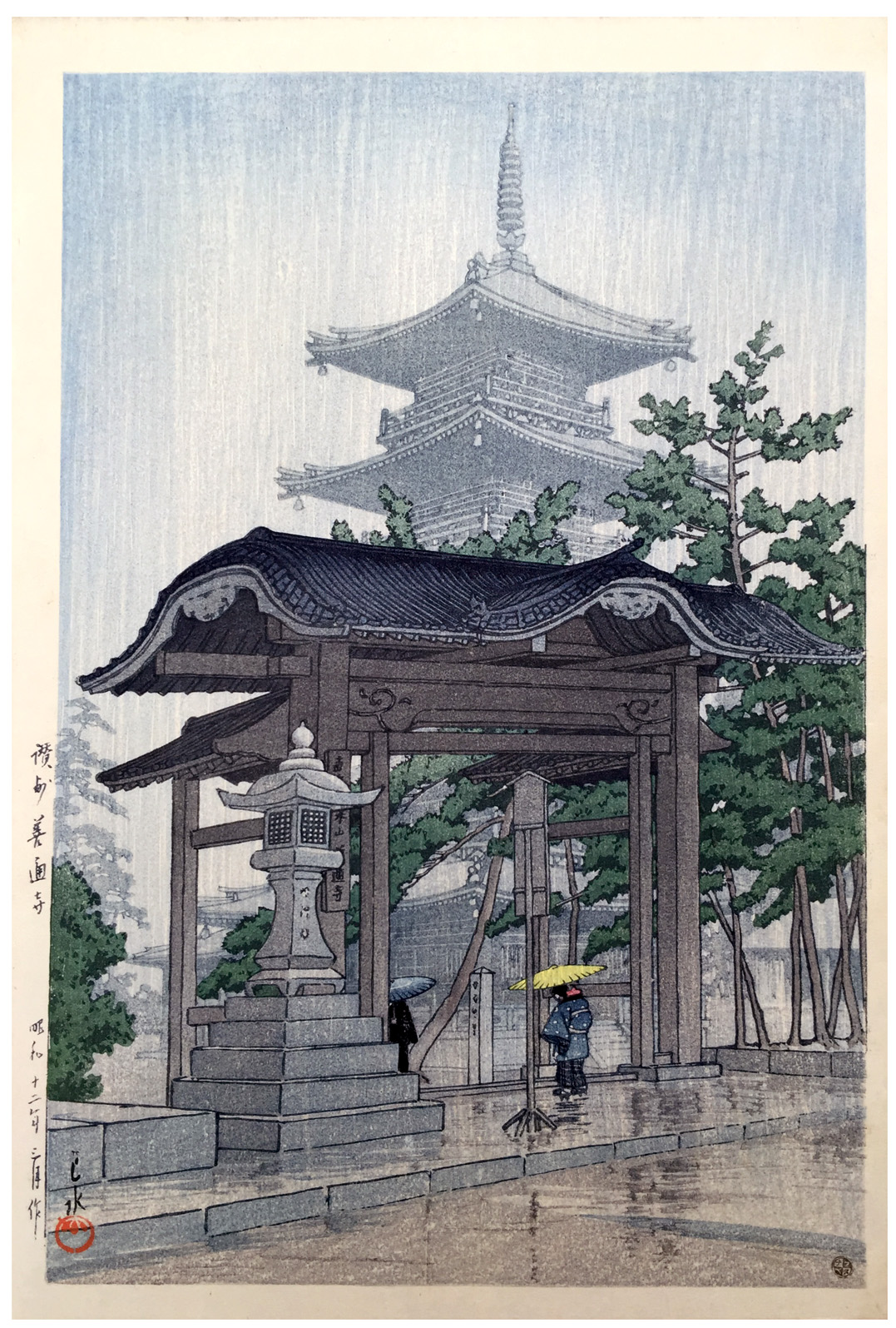Zentsu-ji Temple in Sanuki Province by Kawase Hasui 6 mm Seal