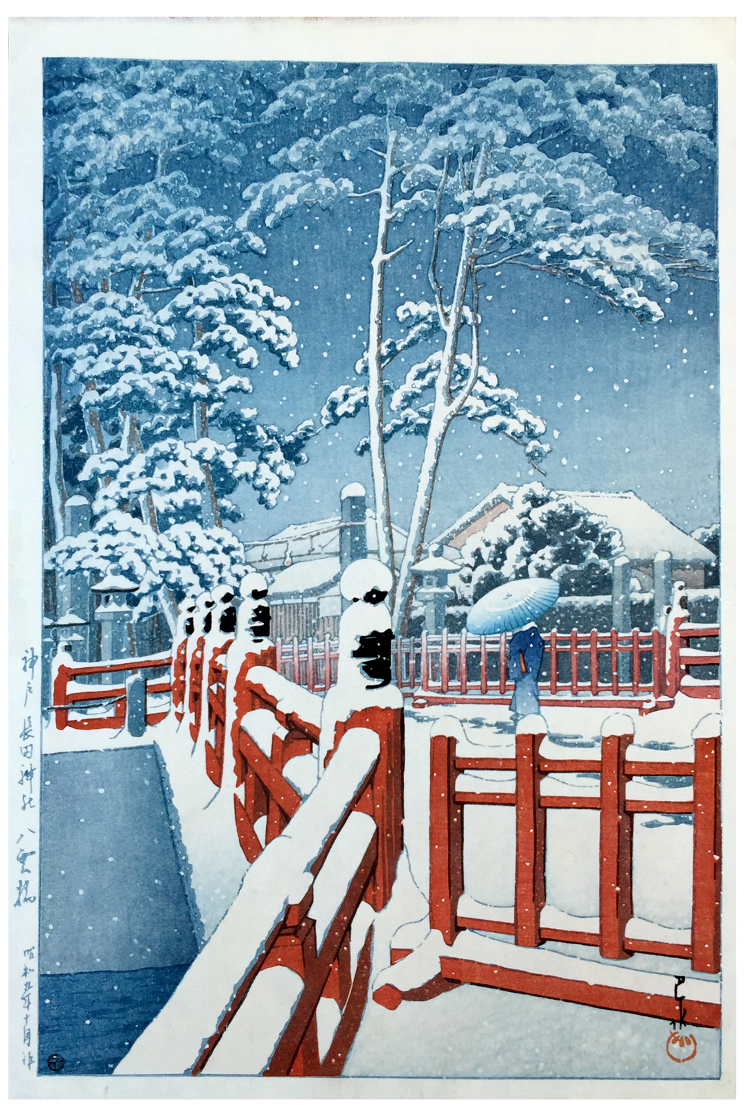 Snow at Yagumobashi Bridge Kawase Hasui 6 mm Seal