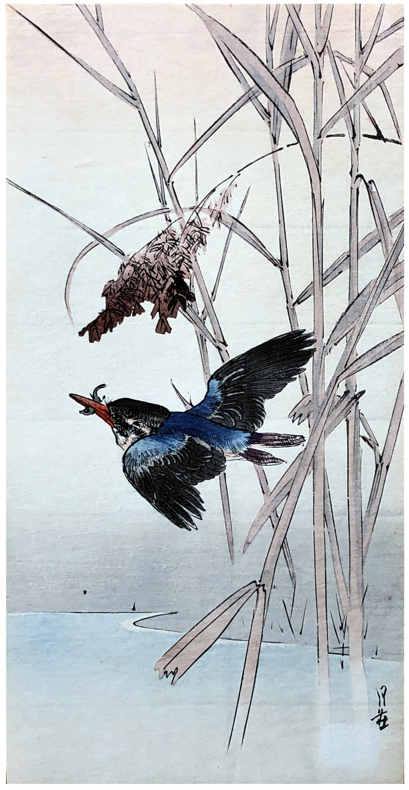 Woodblock Print Title: Kingfisher and Reeds