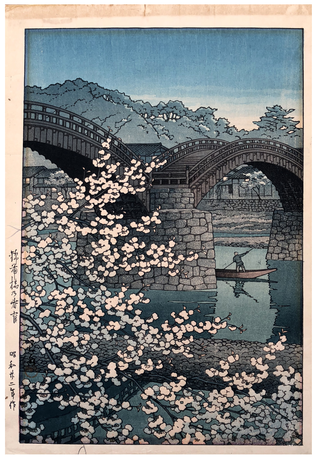 Woodblock Prints Title: Spring Evening at Kintai Bridge