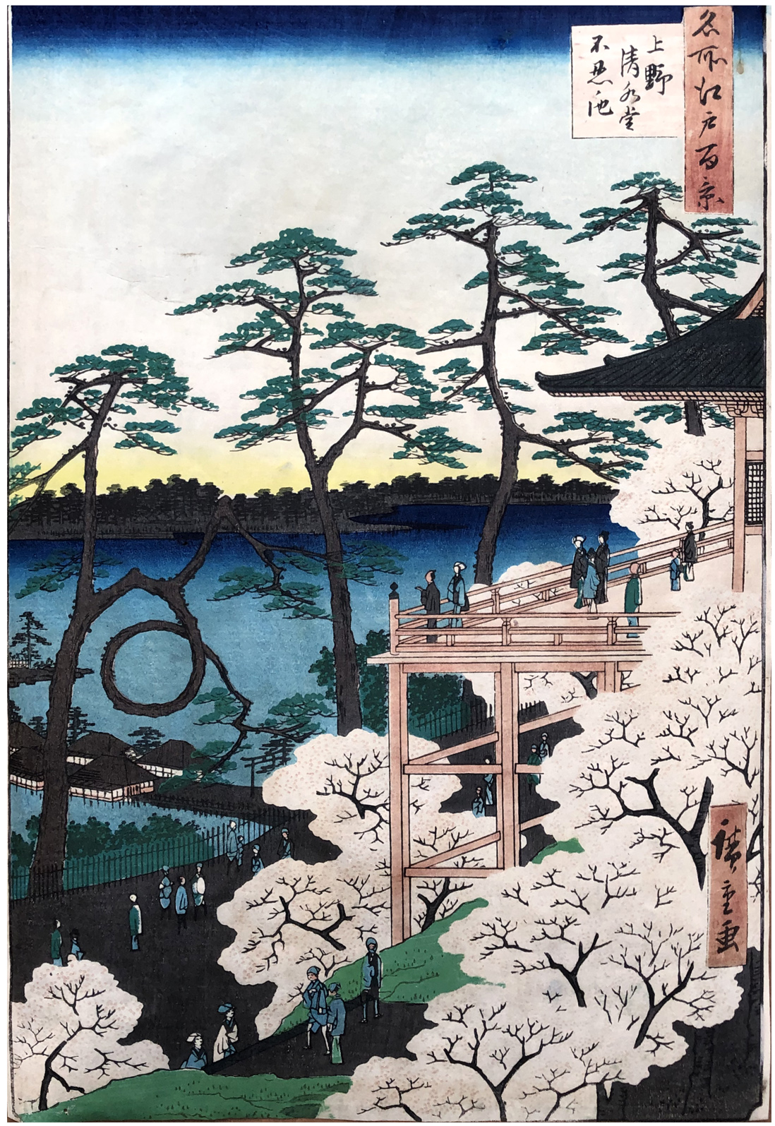 Woodblock Print Title:Kiyomizu Hall and Shinobazu Pond at Ueno, from the series One Hundred Famous Views of Edo (Meisho Edo hyakkei)