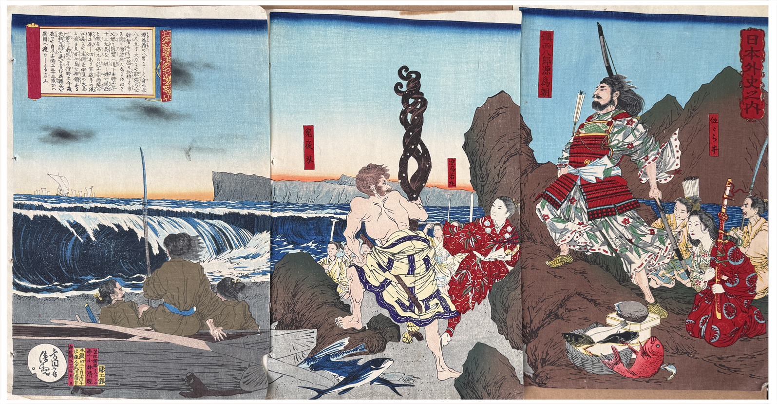 Size: Vertical Oban triptych; 27 1/2" x 14" (70 x 35.5 cm)