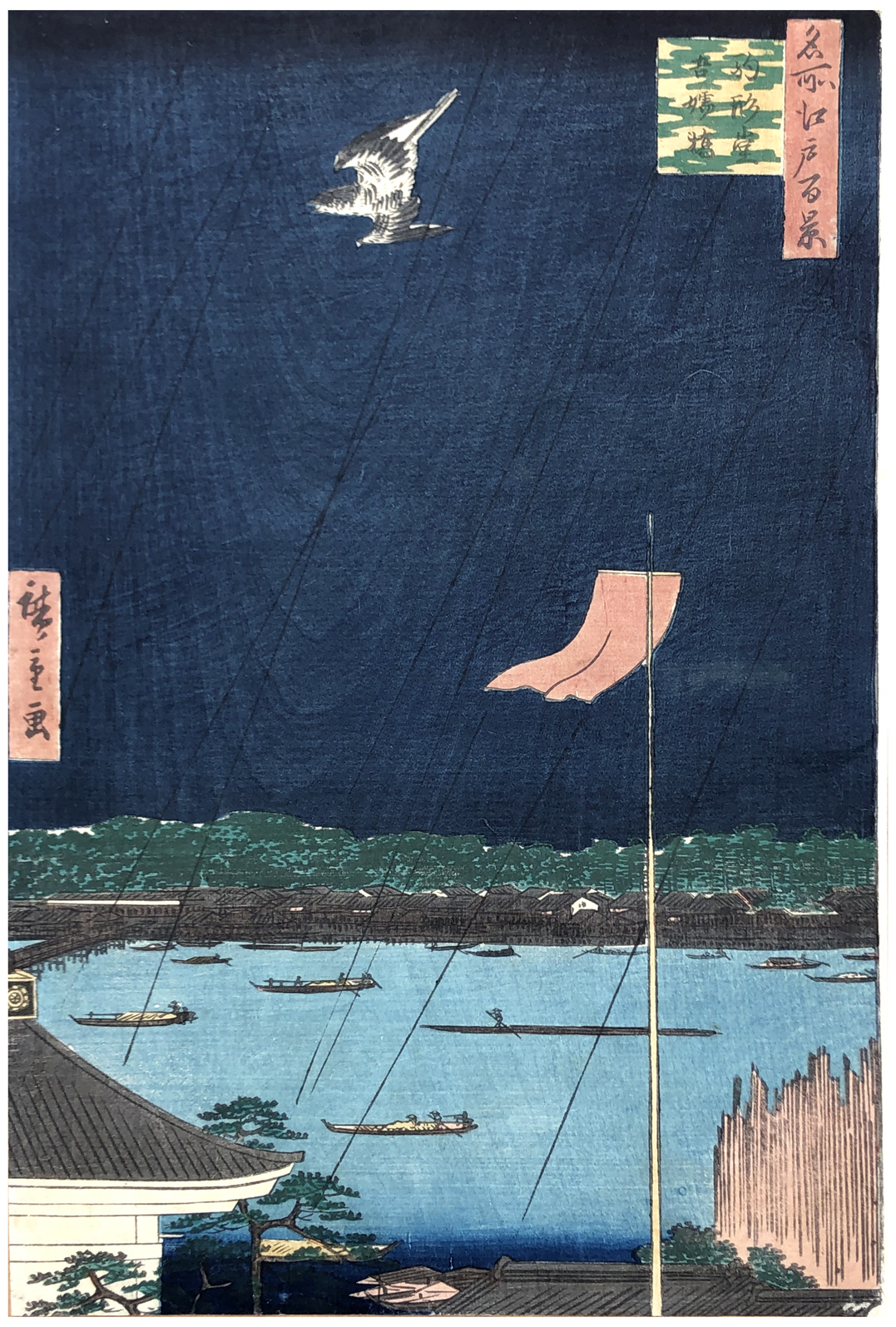 The placement of the cuckoo above Komakata Hall (seen here at the lower left) is no accident but a reference to a famous love poem by a Yoshiwara courtesan awaiting the return of her lover.