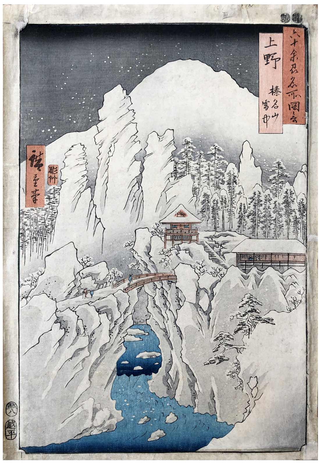 Woodblock Print Title: Kozuke Province: Mount Haruna Under Snow (Kozuke, Harunasan setchu), from the series Famous Places in the Sixty-odd Provinces