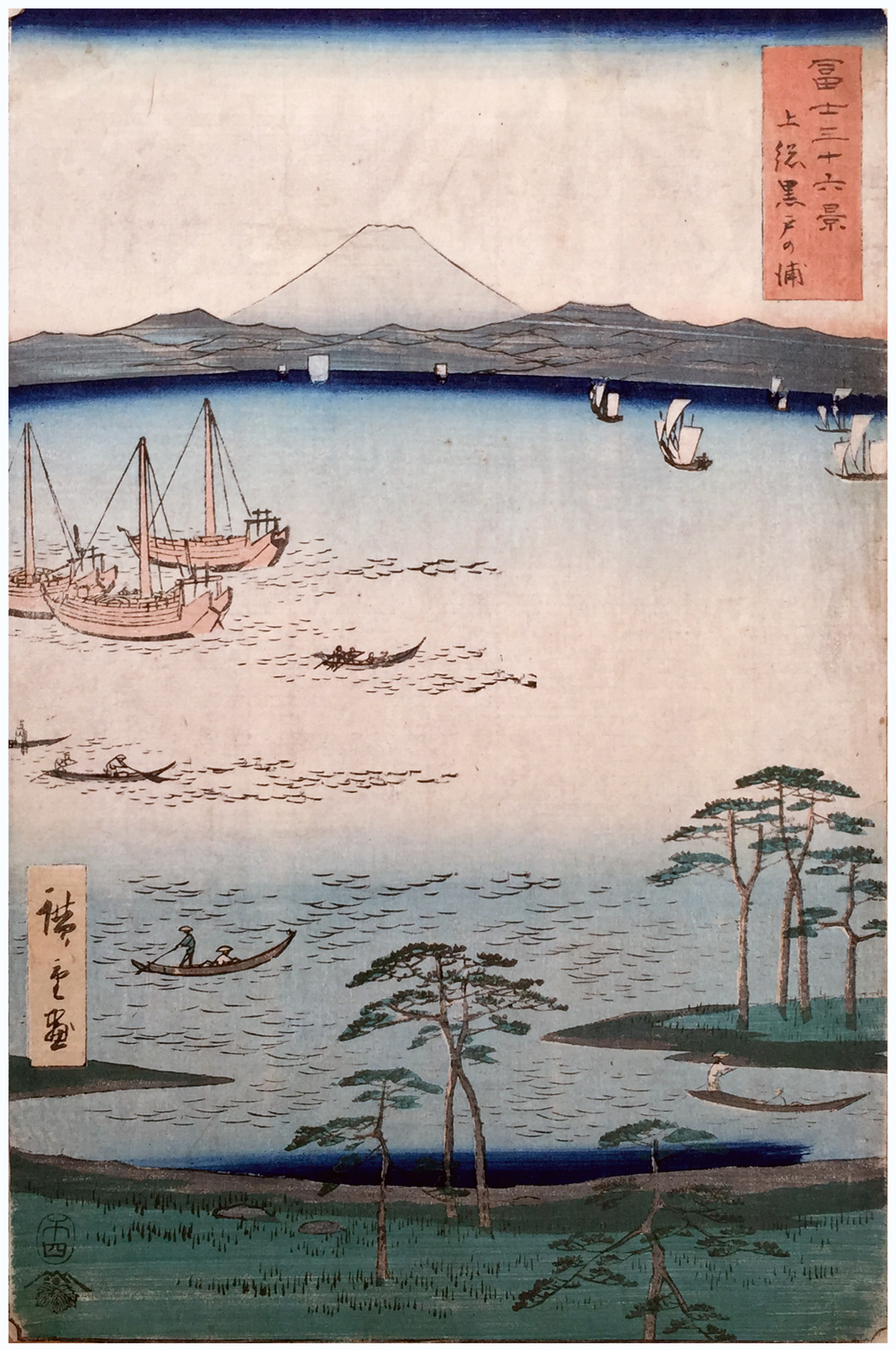 Woodblock Prints Title: Kuroto Bay in Kazusa Province from the 36 views of Mt Fuji Series