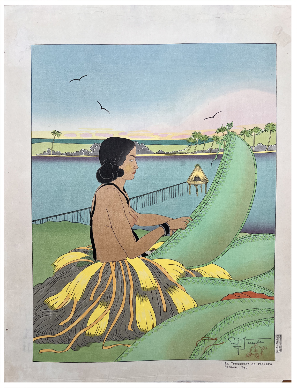 Woodblock Print Title: La Tresseuse de Panier