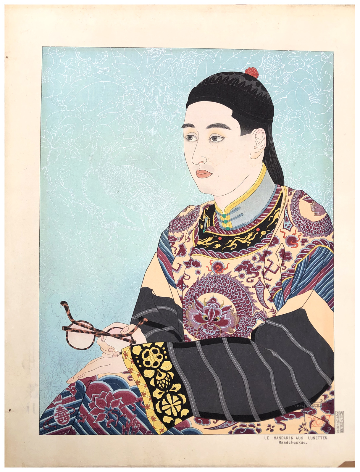 Woodblock Print Title: Le Mandarin aux Lunettes Mandchouko