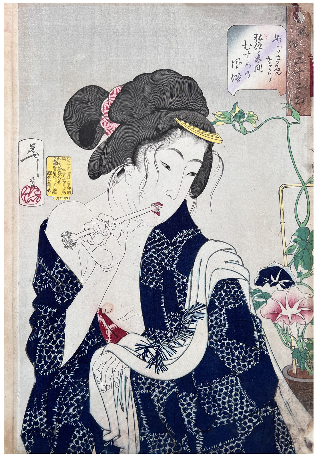 Woodblock Print Title: Thirty-two Aspects of Customs and Manners:# 15 Looking Tired