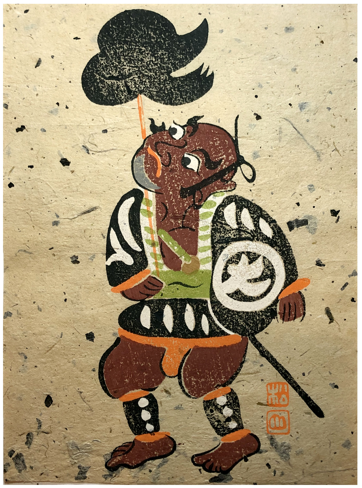 Woodblock Print Title: Man with a Hat on Stick