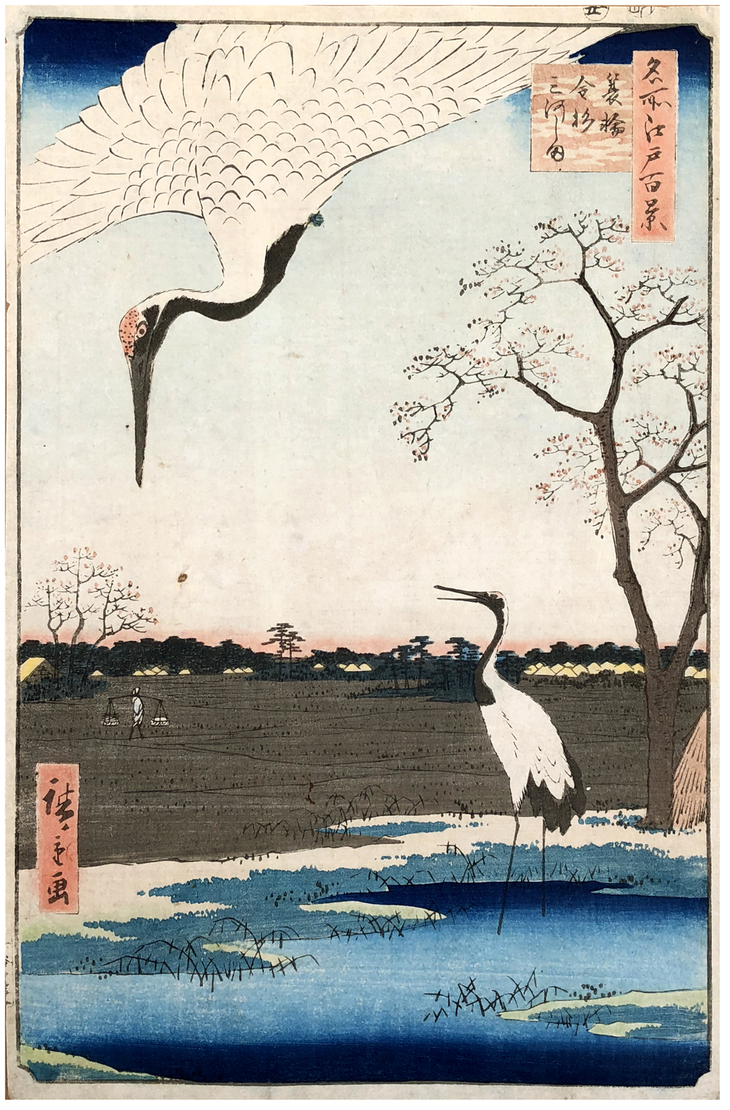 Woodblock Print Title: Minowa, Kanasugi, Mikawashima (Minowa Kanasugi Mikawashima), from the series One Hundred Famous Views of Edo (Meisho Edo hyakkei)