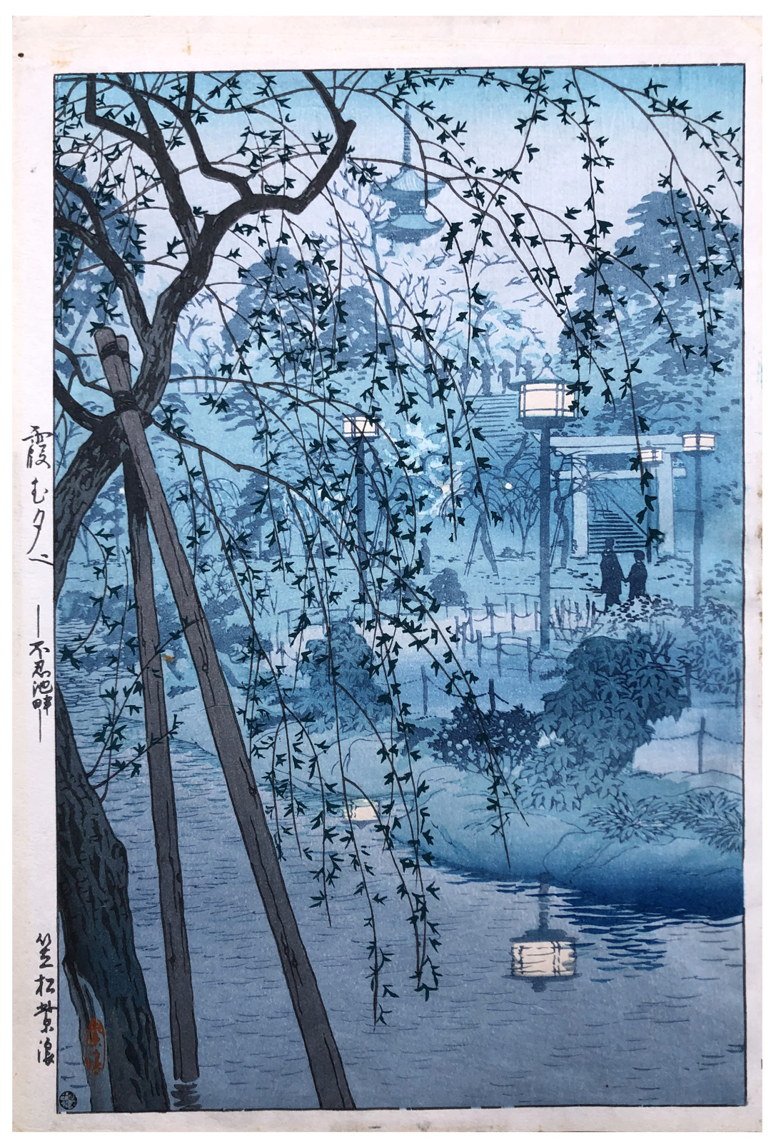 Woodblock Print Title: Misty Evening at Shinobazu Pond