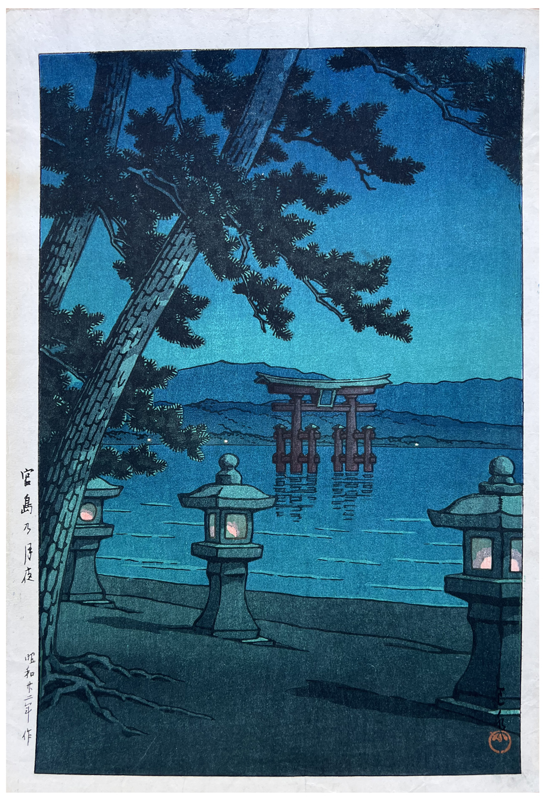 Woodblock Print Title: Moonlit Night at Miyajima