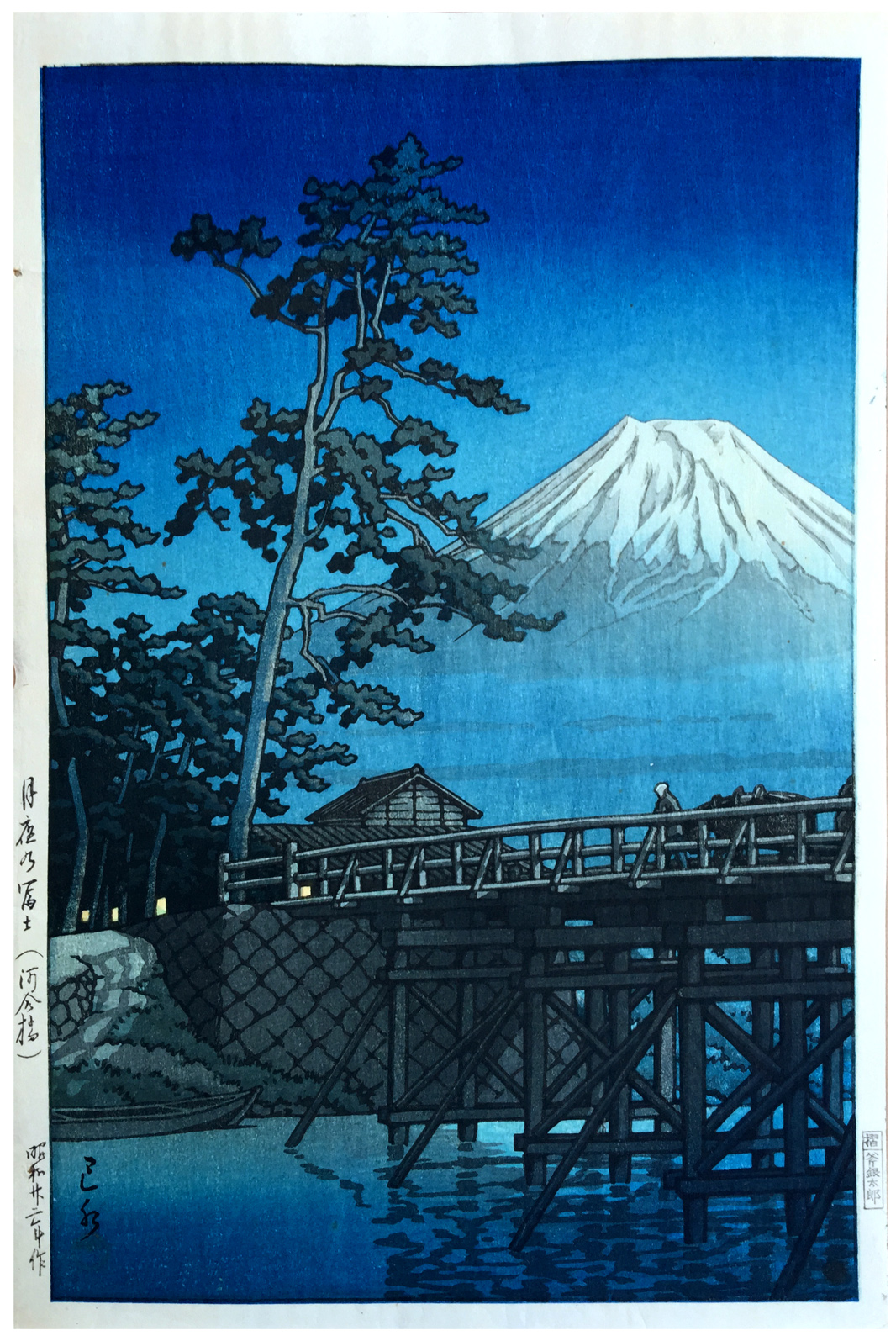 Mt Fuji and Kawai Bridge by Kawase Hasui I Seal 1st Ed.