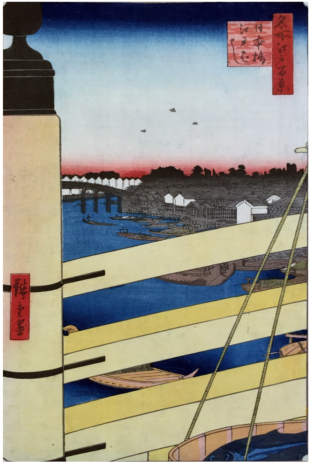Woodblock Prints Title: Nihonbashi Bridge and Edobashi Bridge (Nihonbashi Edobashi), from the series One Hundred Famous Views of Edo (Meisho Edo hyakkei)