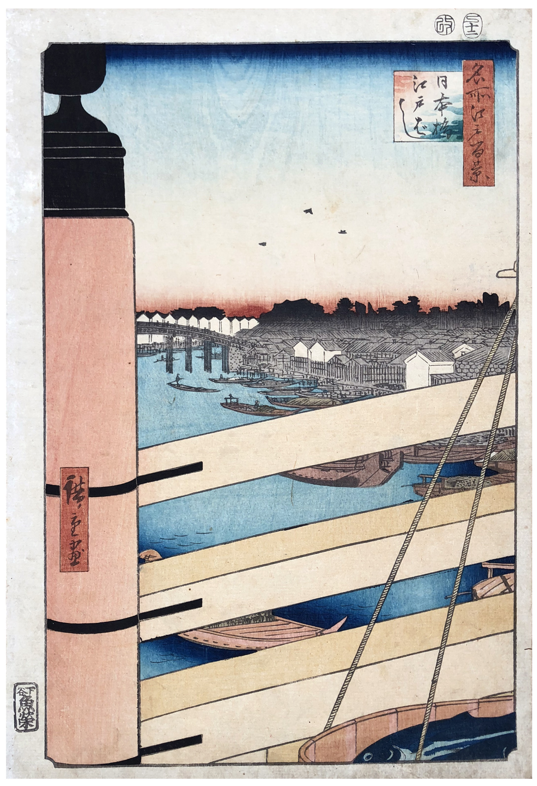 Woodblock Print Title: Nihonbashi Bridge and Edobashi Bridge (Nihonbashi Edobashi), from the series One Hundred Famous Views of Edo (Meisho Edo hyakkei)