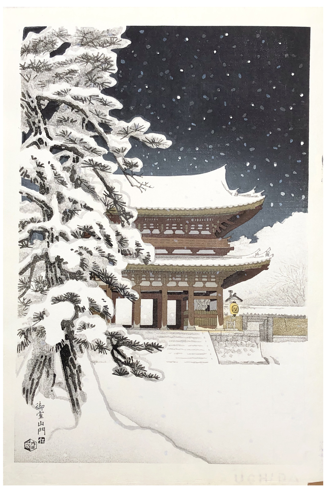 Woodblock Print Title: Ninnaji Temple Gate in Snow
