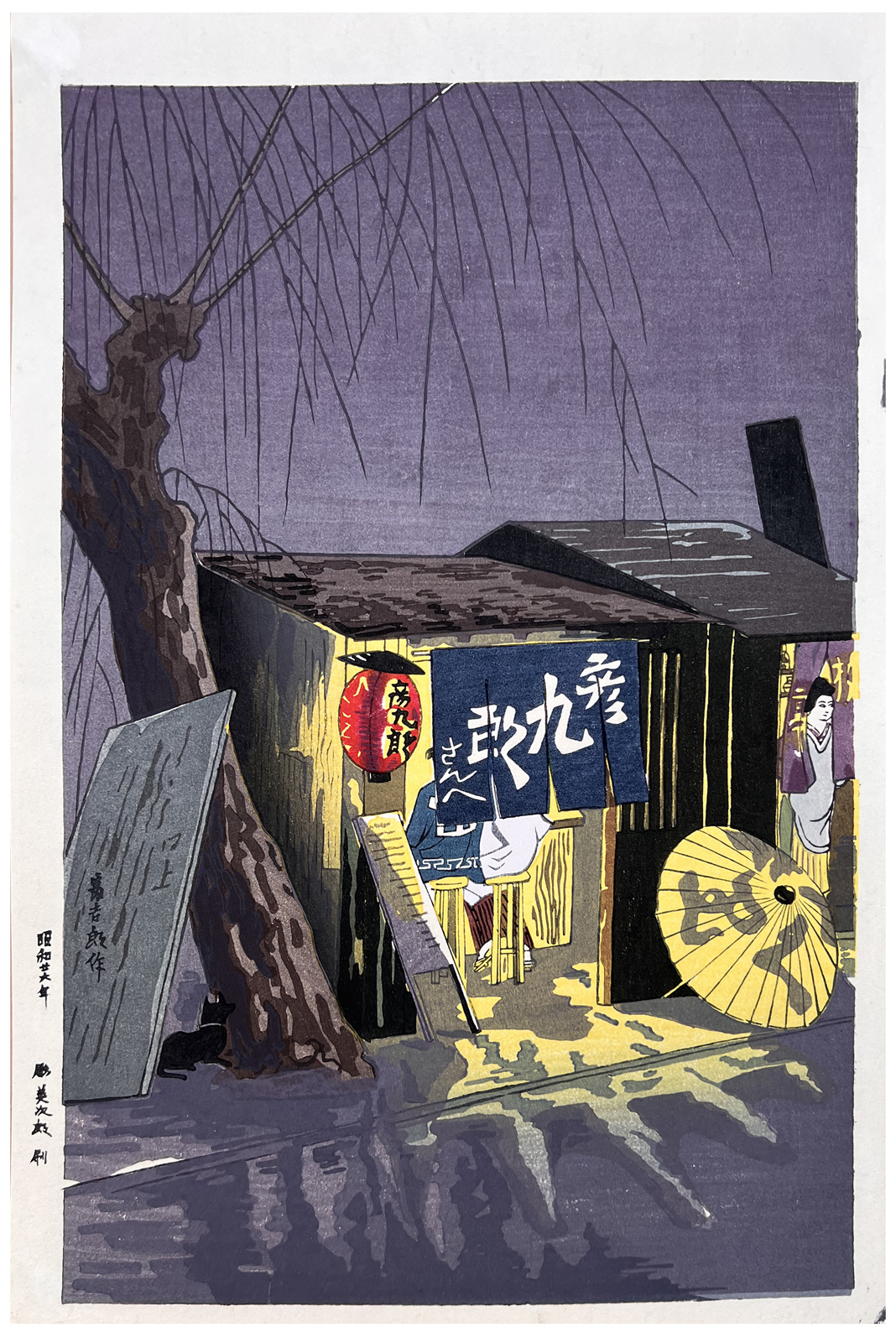 Woodblock Print Title: Noodle Restaurant on a Rainy Night