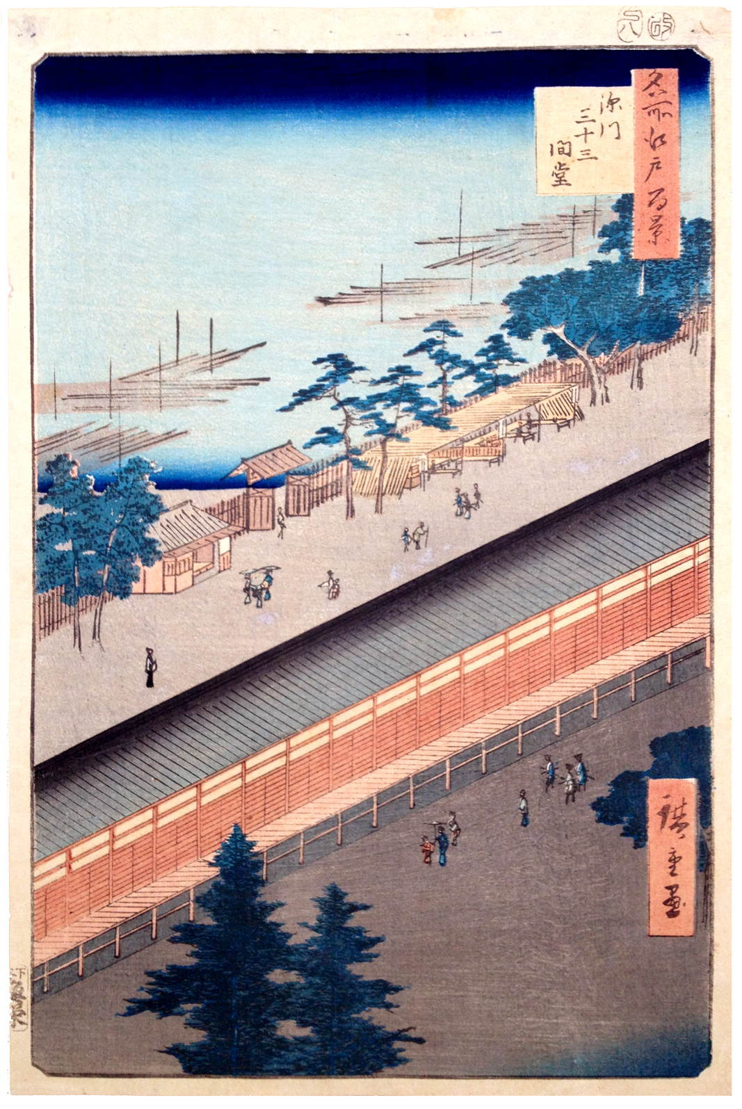 More about this print: The Hall of Thirty-Three Bays was under the jurisdiction of Eitaiji Temple, whose garden was the subject of the previous print.