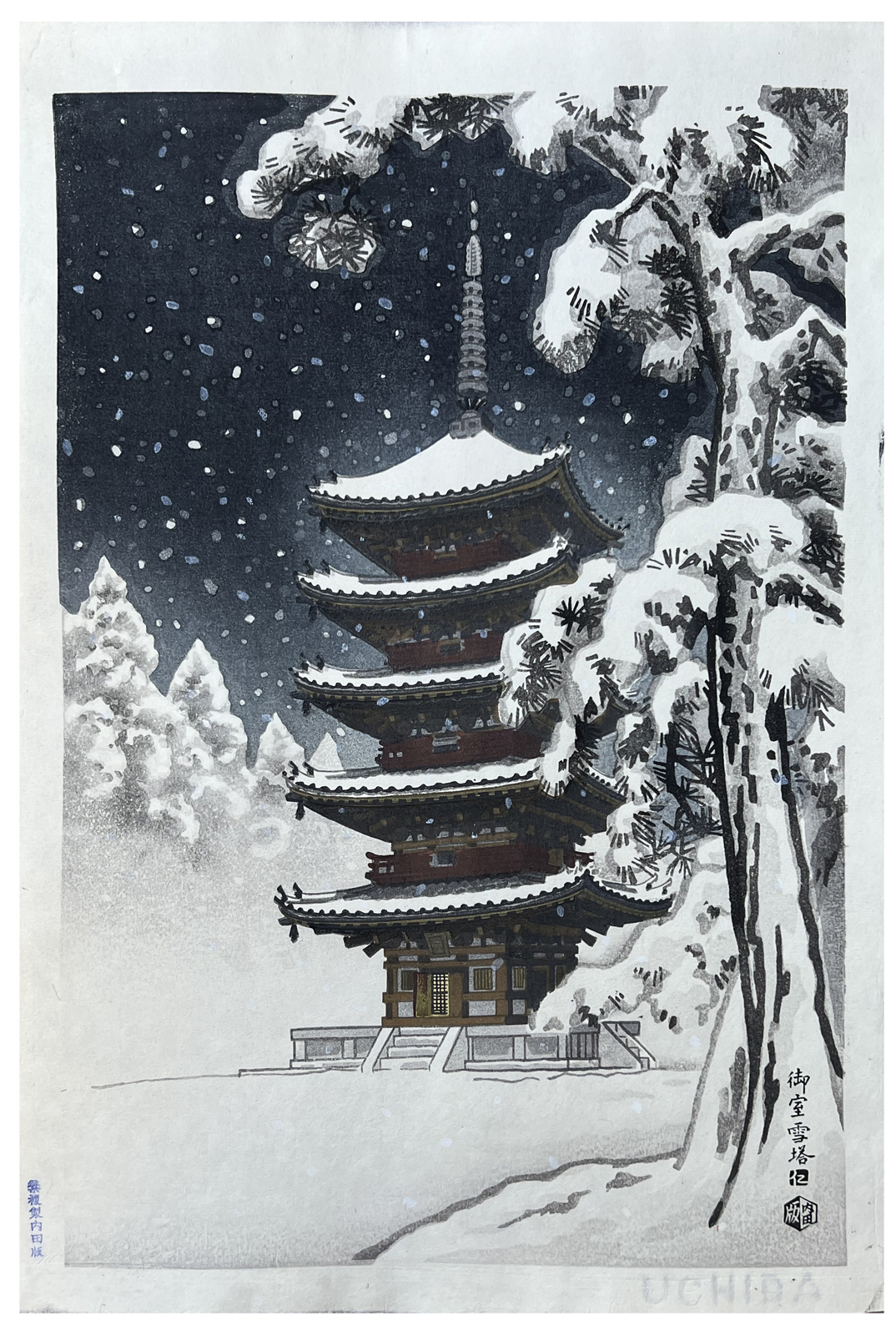 Woodblock Print Title: Pagoda of Ninnaji Temple in Snow