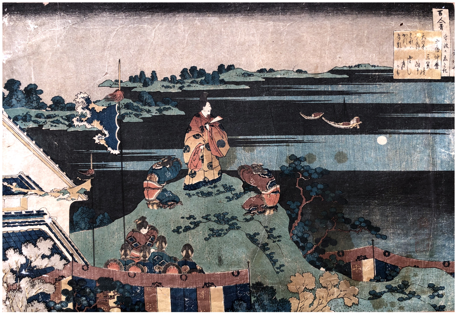 Woodblock Print Title: Poem by Abe no Nakamaro, from the series One Hundred Poems Explained by the Nurse (Hyakunin isshu uba ga etoki)
