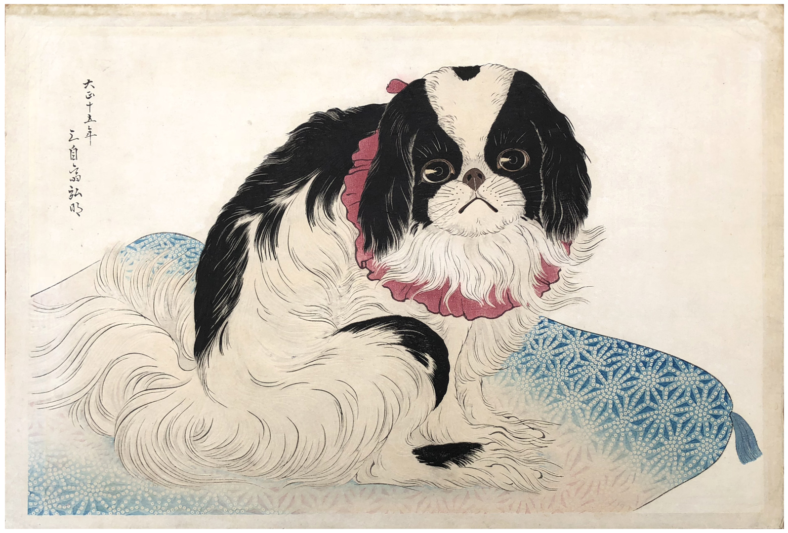 Woodblock Print Title: Pug in a Cushion