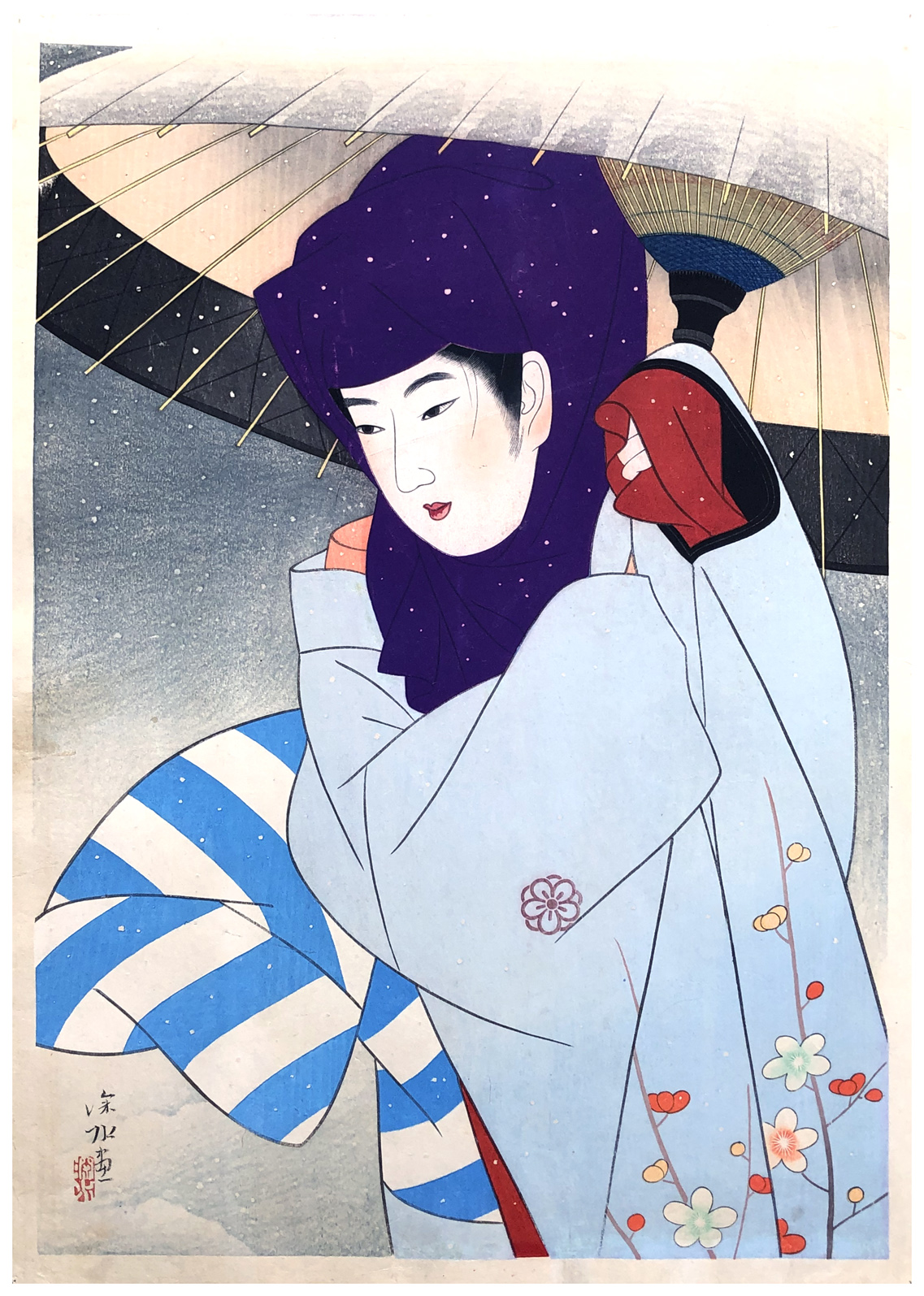 Woodblock Print Title: Purple Hood (Okoso Zukin)