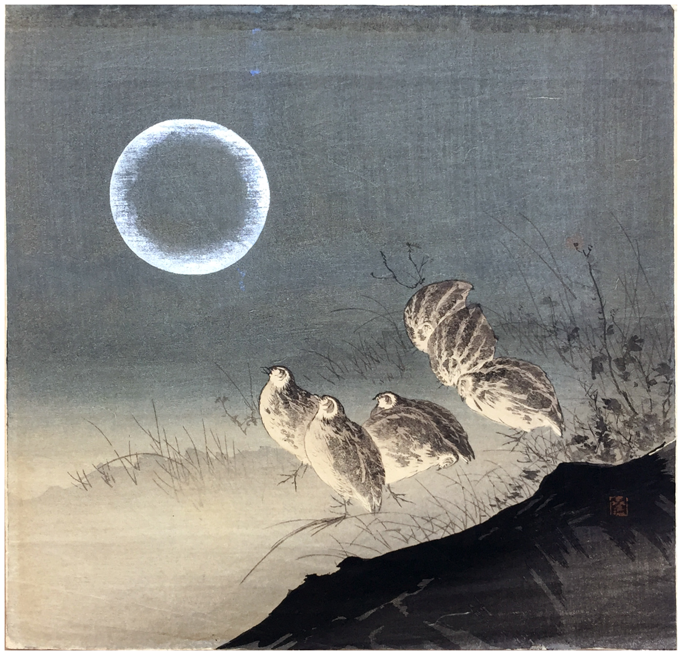 Woodblock Prints Title: Quails by Moonlight