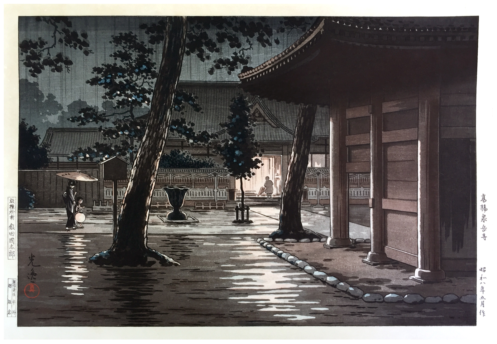 Rain at Takanawa Temple by Tsuchiya Koitsu Pre WWII