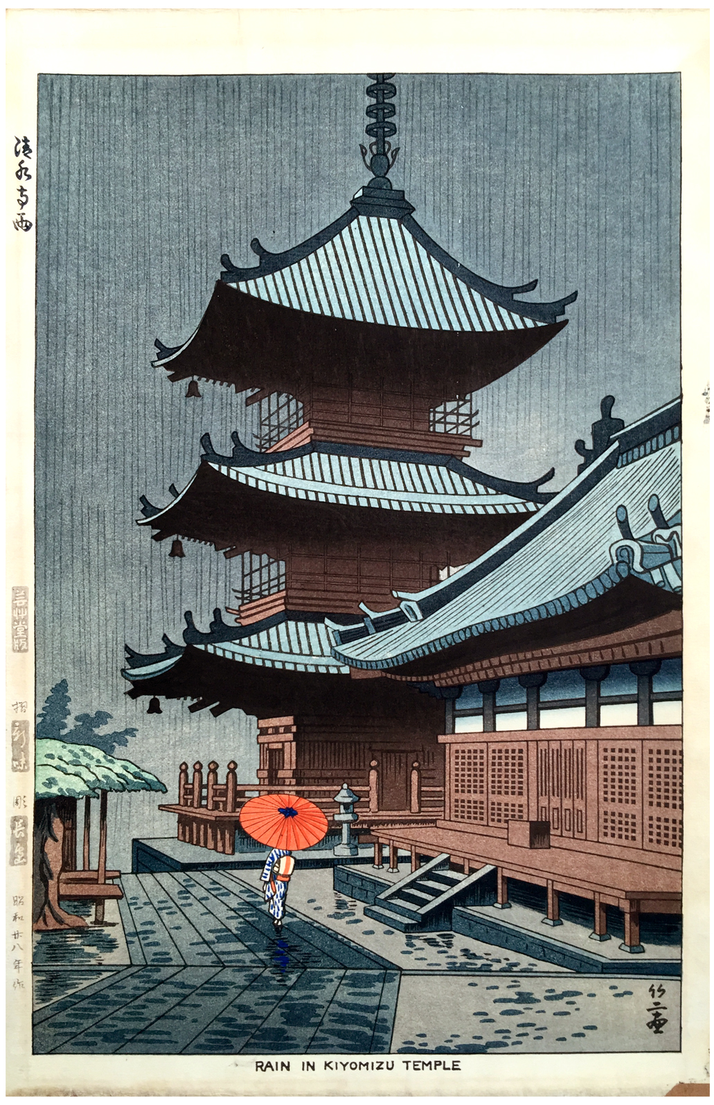 Woodblock Prints Title: Rain in Kiyomizu Temple