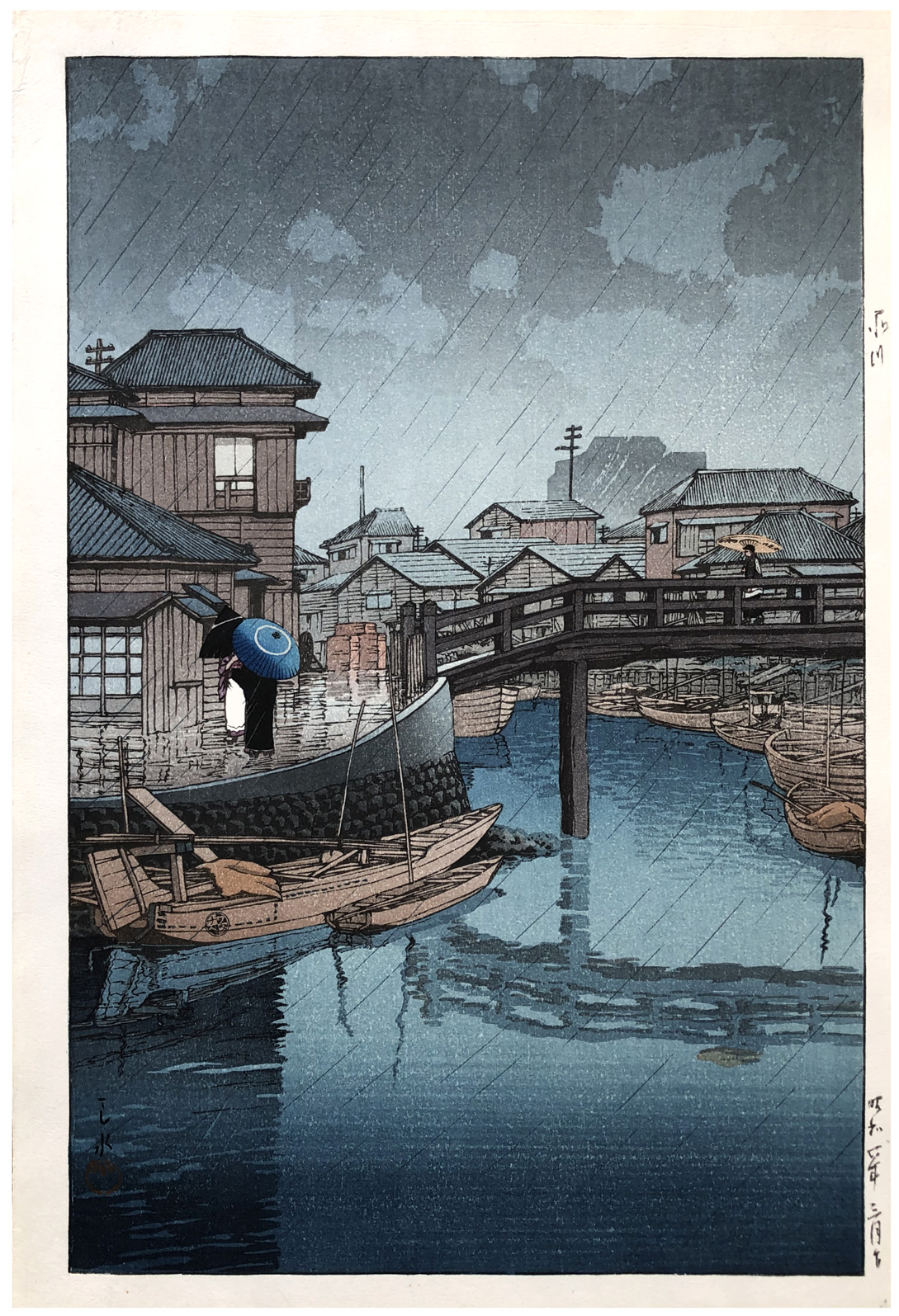 Woodblock Print Title: Rainy Season at Ryoshimachi, Shinagawa