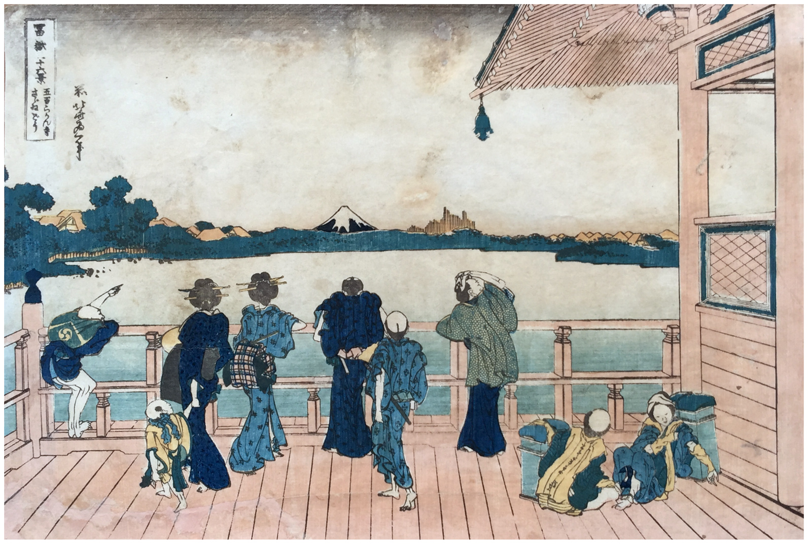 Woodblock Prints Title: Sazai Hall of the Temple of the Five Hundred Arhats (Gohyaku Rakan-ji Sazaidô), from the series Thirty-six Views of Mount Fuji (Fugaku sanjûrokkei)