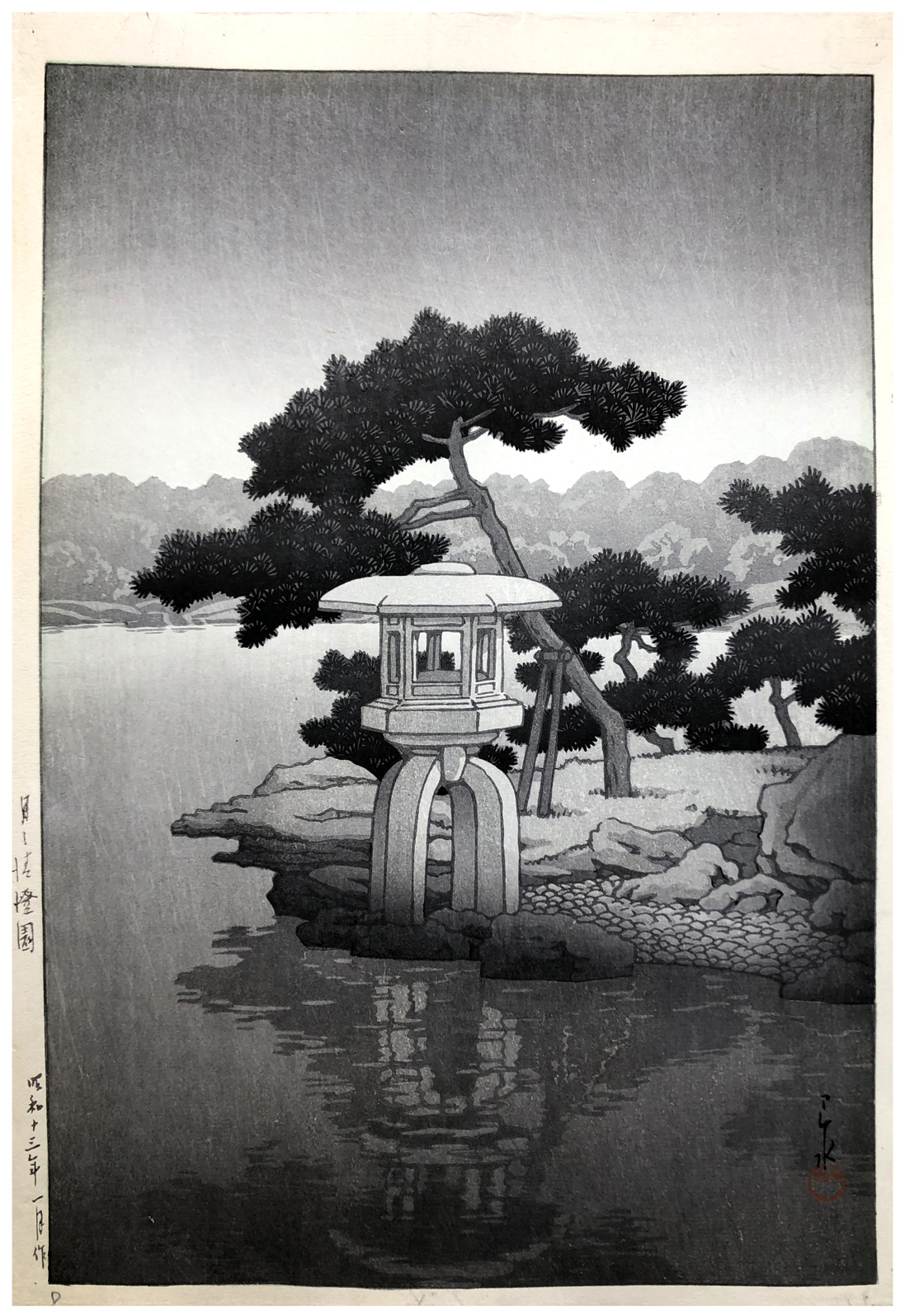 Woodblock Print Title: Moonlight at Seichoen Garden