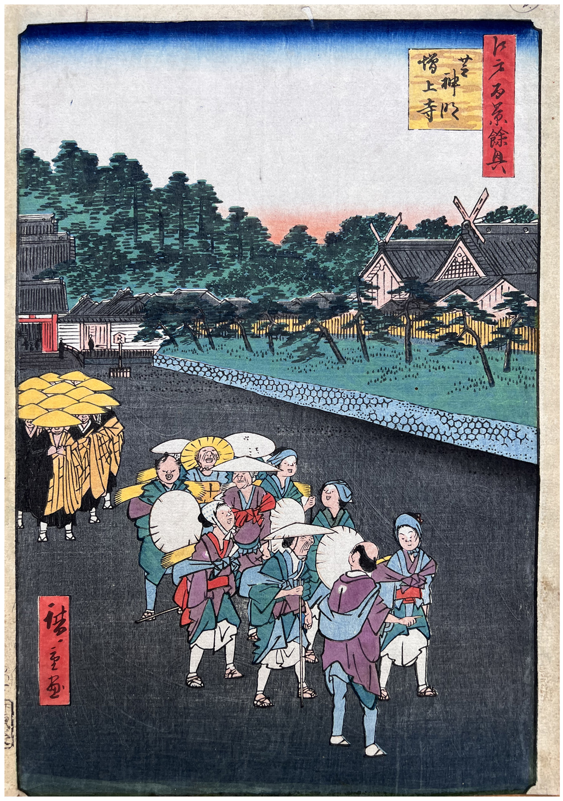 Woodblock Print Title: 100 Views of Edo # 79 Shiba Shinmei Shrine and Zôjôji Temple