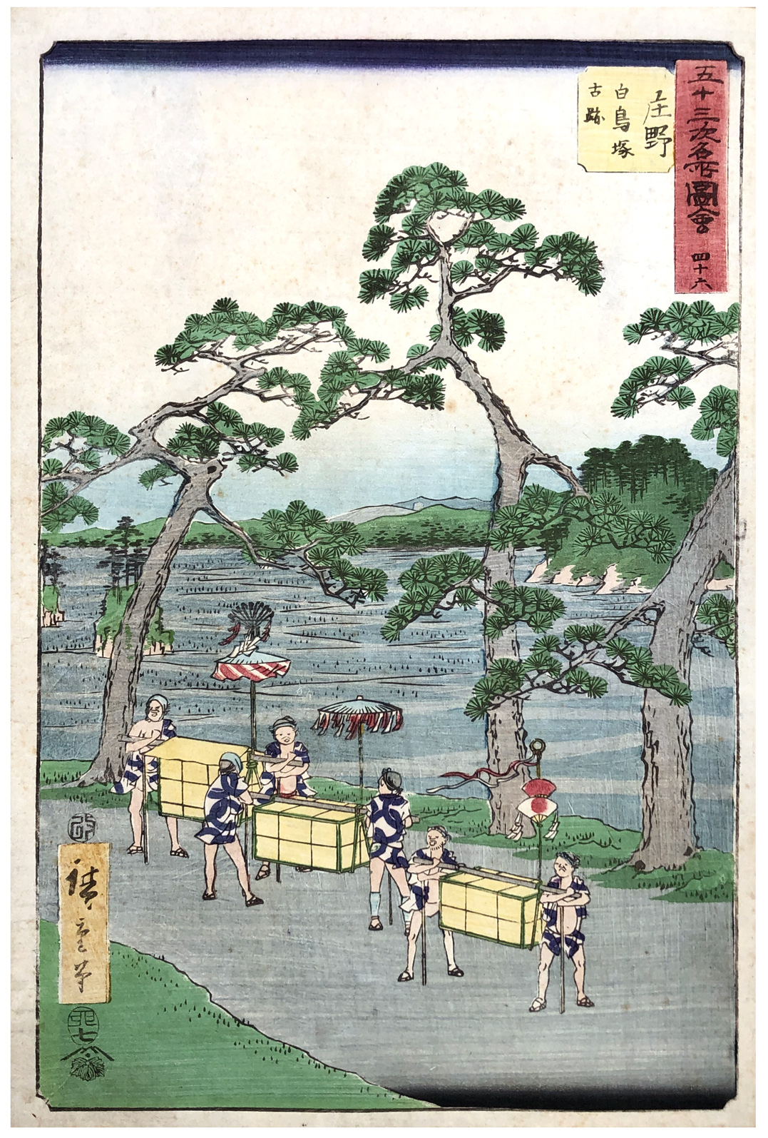 Woodblock Print Title: Shôno: Ancient Remains at Shiratori Mound (Shôno, Shiratorizuka koseki), from the series Famous Sights of the Fifty-three Stations (Gojûsan tsugi meisho zue)