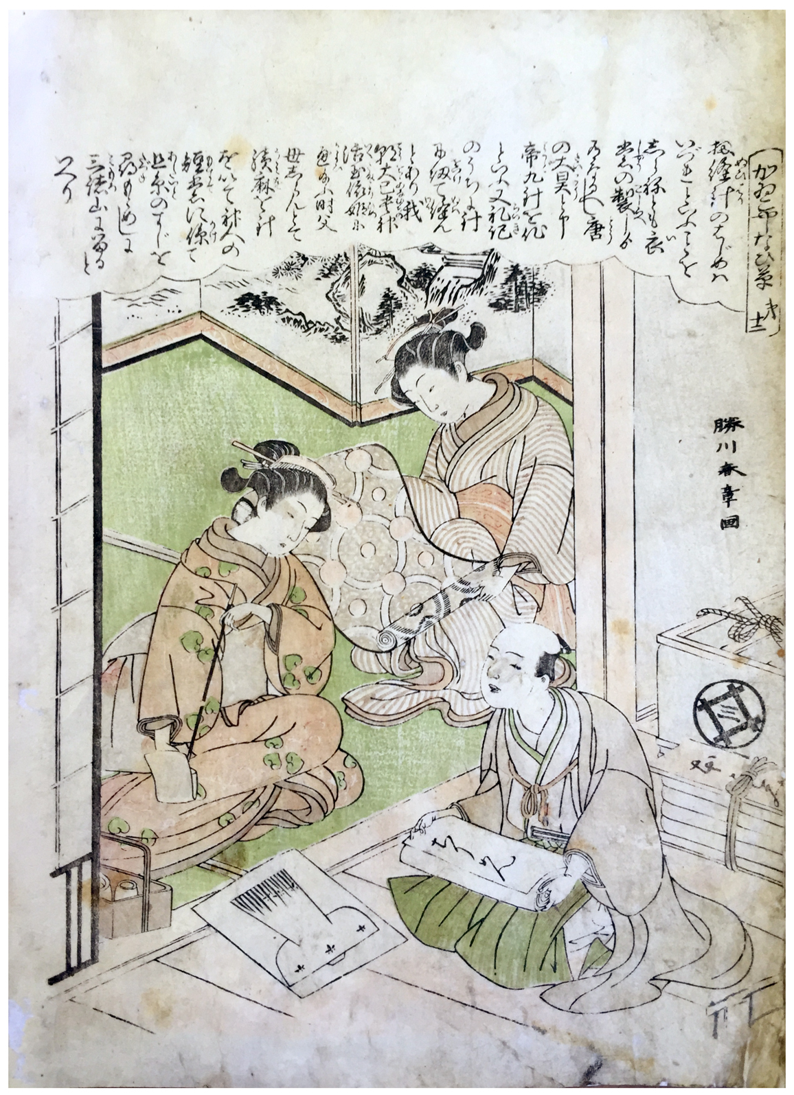 Notes: This is the print # 12 of a series of 12 prints, 6 being from Katsukawa Shunsho, the other 6 by Kitao Shigemasa