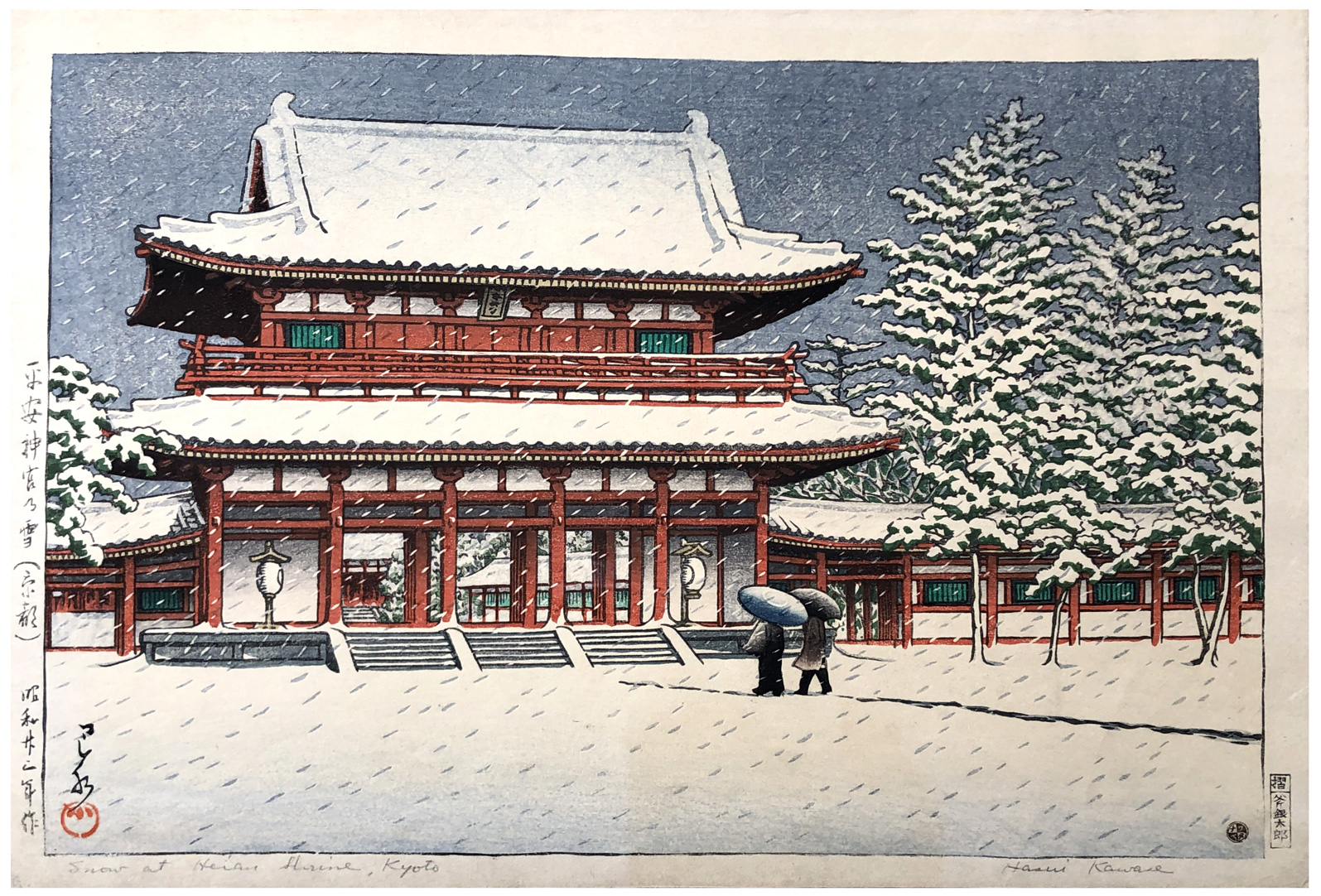 Woodblock Print Title: Snow at Heian Shrine