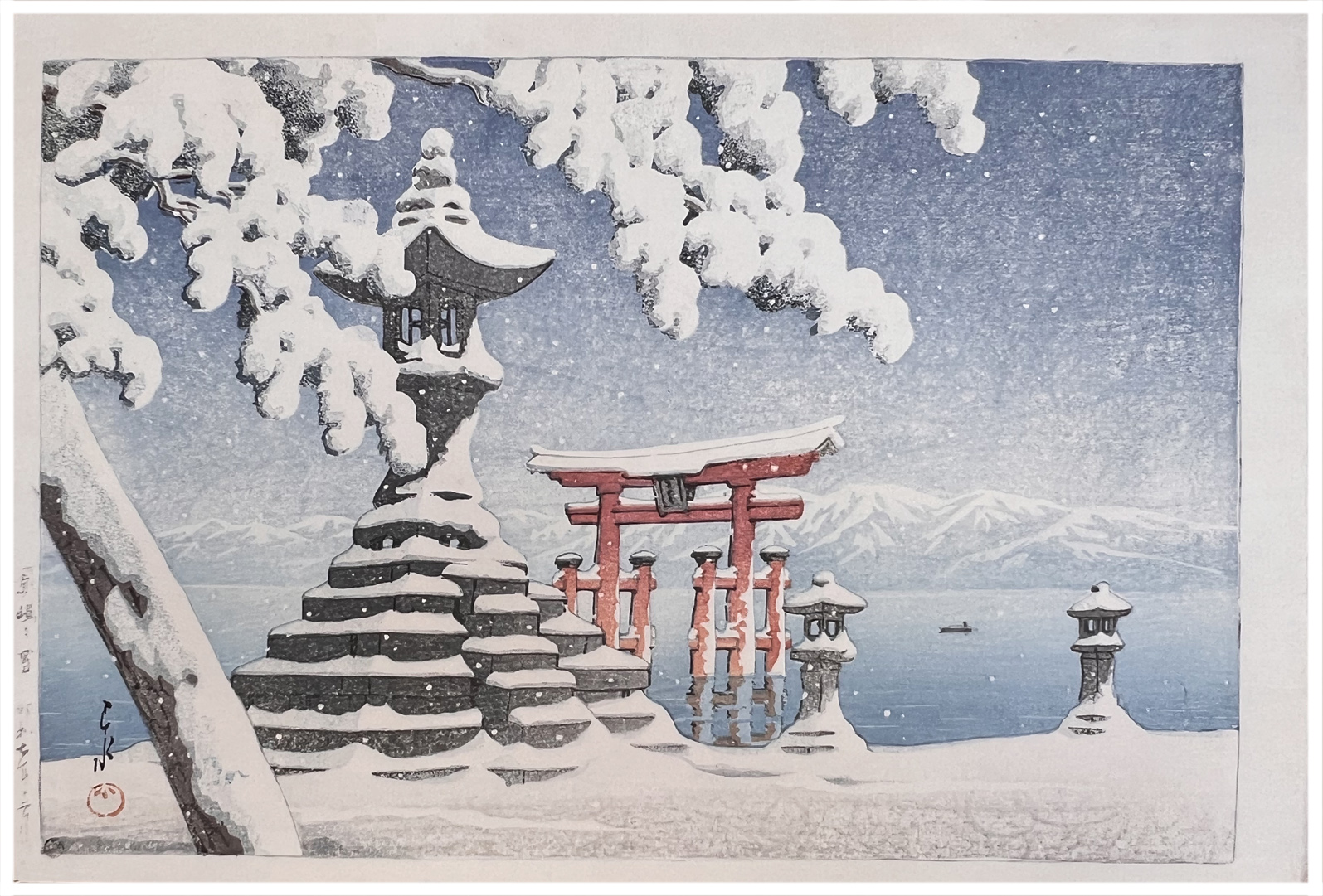 Woodblock Print Title: Snow at Itsukushima (Itsukushima no yuki)