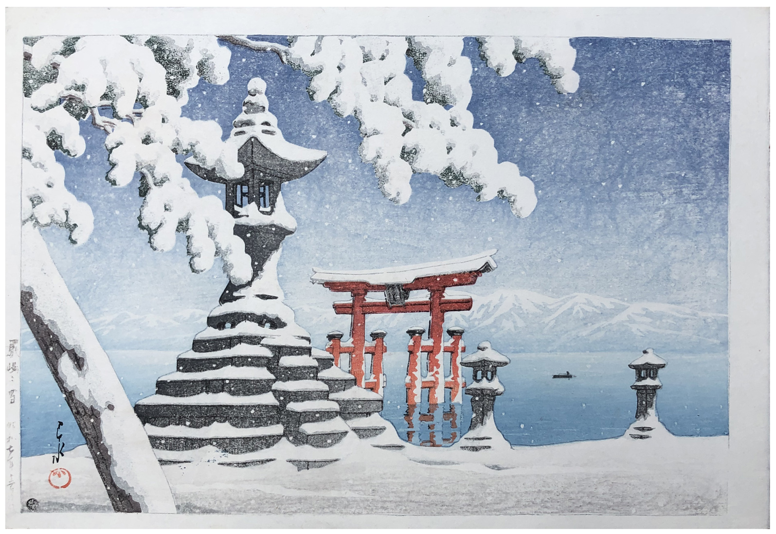 Woodblock Print Title: Snow at Itsukushima (Itsukushima no yuki)
