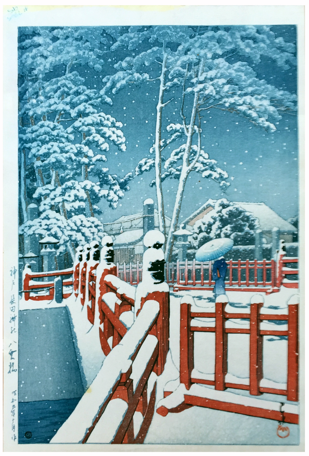 Snow at Yagumobashi Bridge by Kawase Hasui 6mm Seal