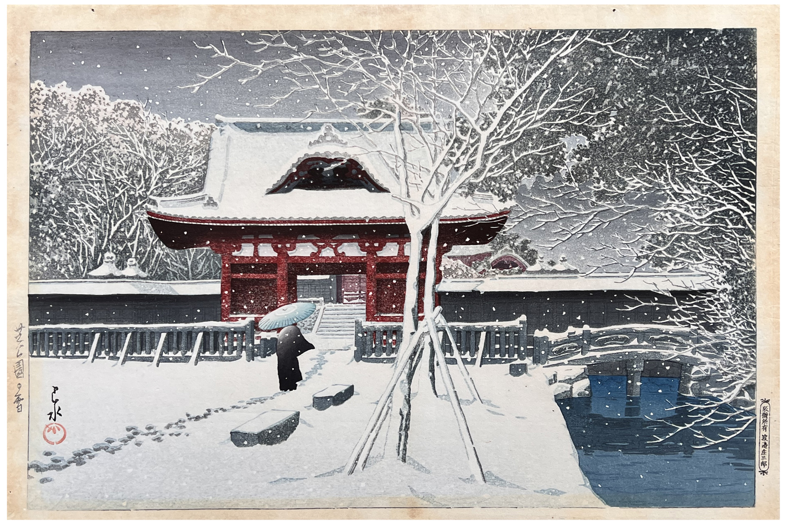 Woodblock Print Title: Snow at Shiba Park