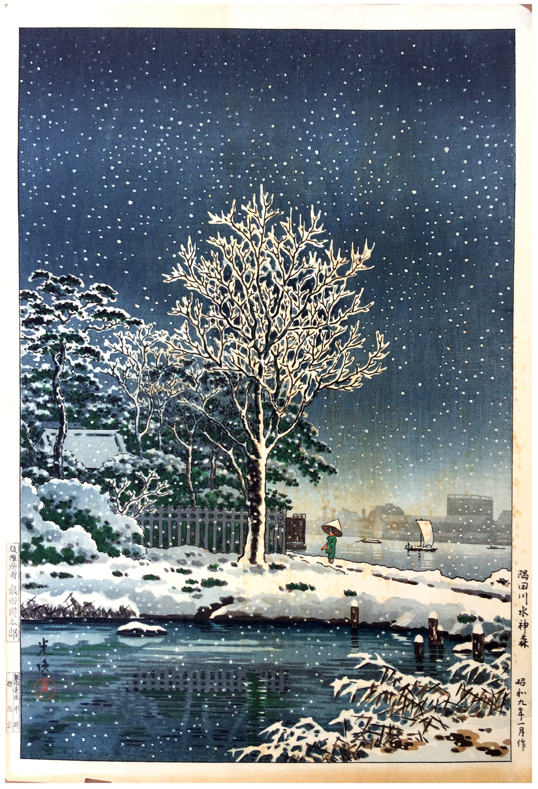 Snow on Sumida River by Tsuchiya Koitsu Pre WWII