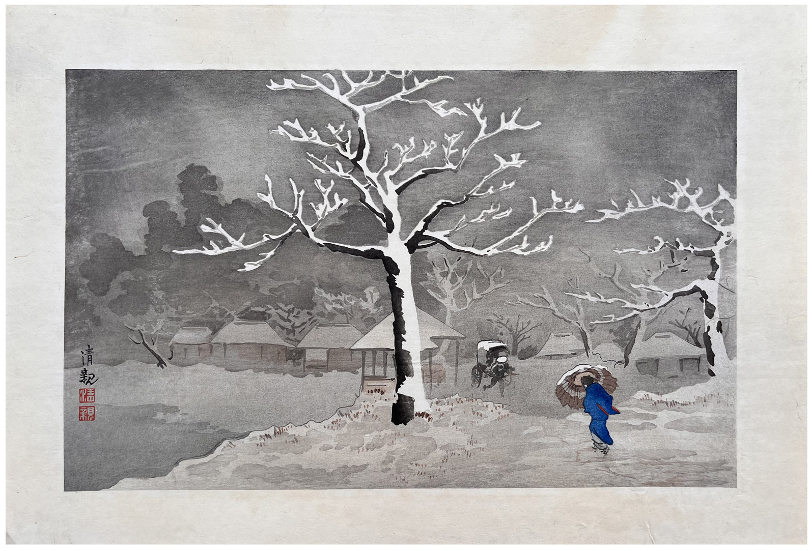 Woodblock Print Title: Snowy Evening at Mikujima Kototoi