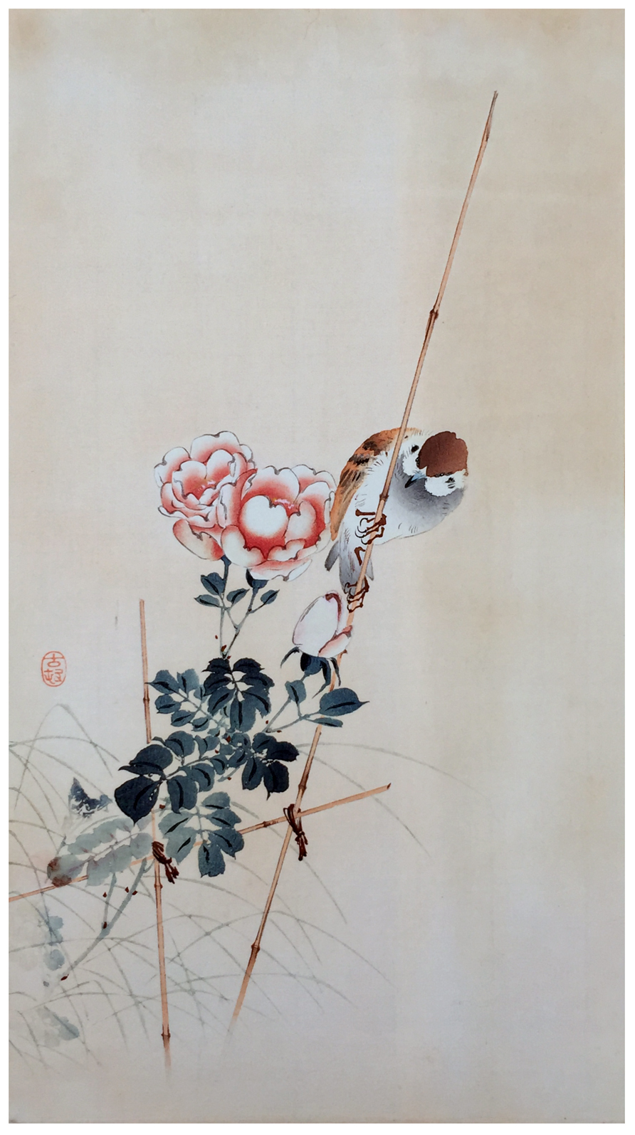 Sparrow in a Clump of Bamboo by Ohara Koson